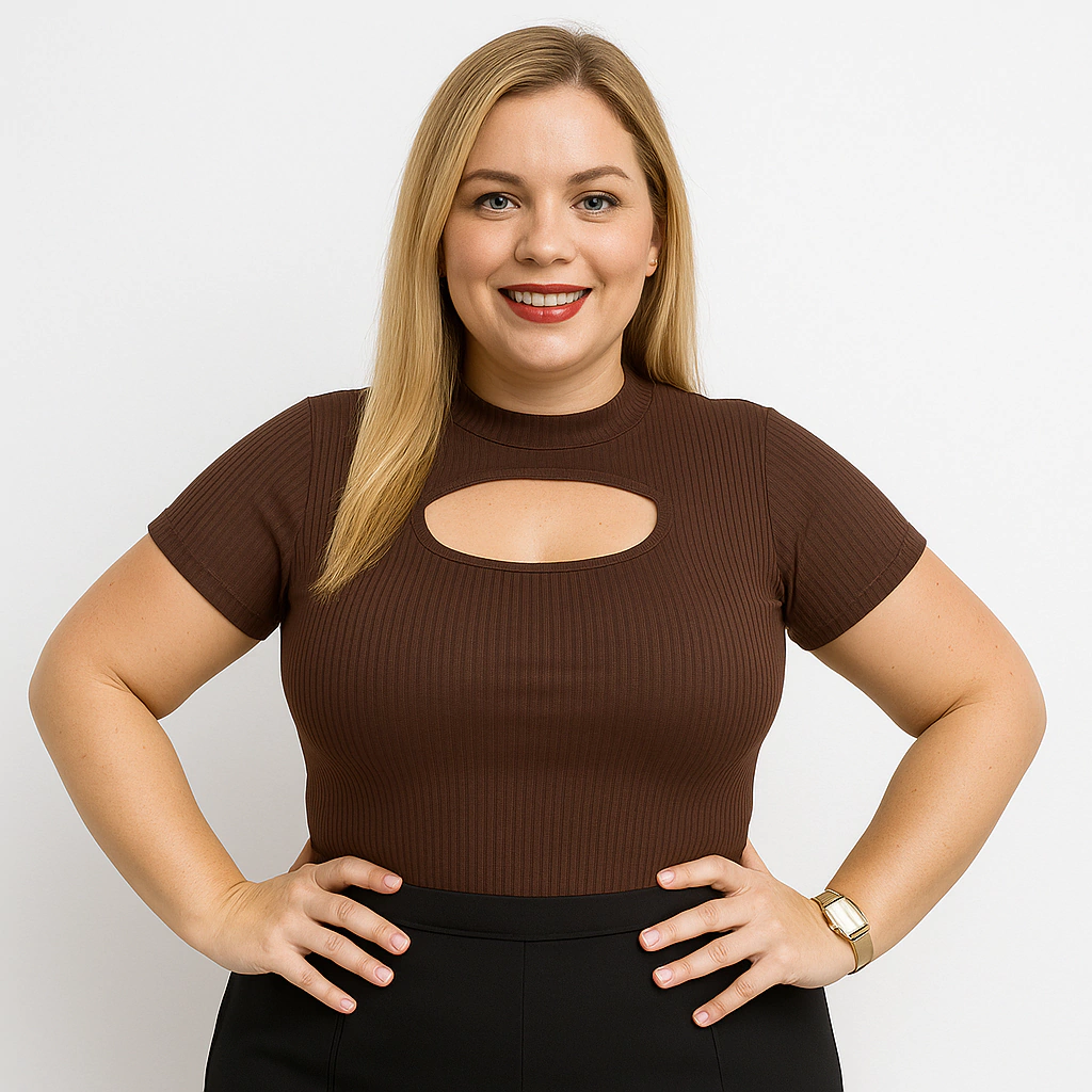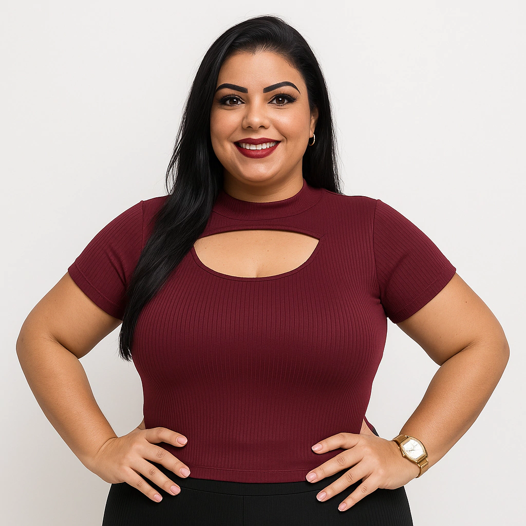 Com modelagem que veste do 46 ao 52, é perfeito para combinar com saias, shorts ou calças de cintura alta – do look casual ao mais arrumadinho.