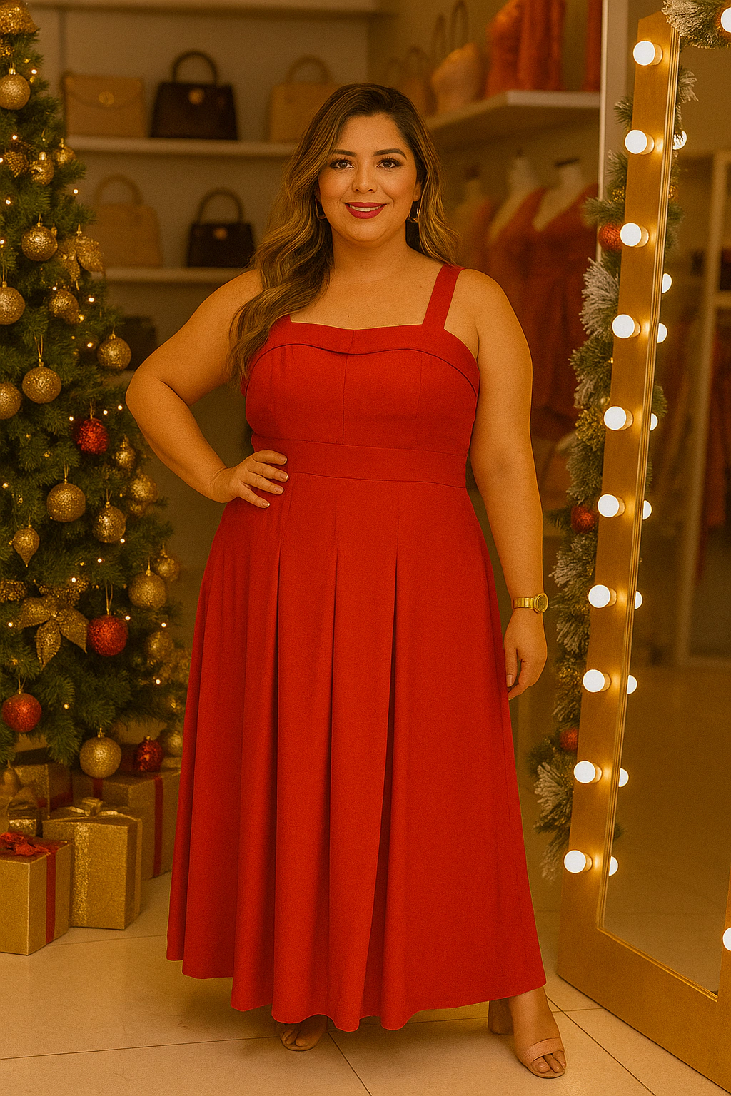 Disponível nos tamanhos plus size do 48 ao 52, o Vestido Jaine oferece um caimento impecável que realça as curvas com conforto e elegância.